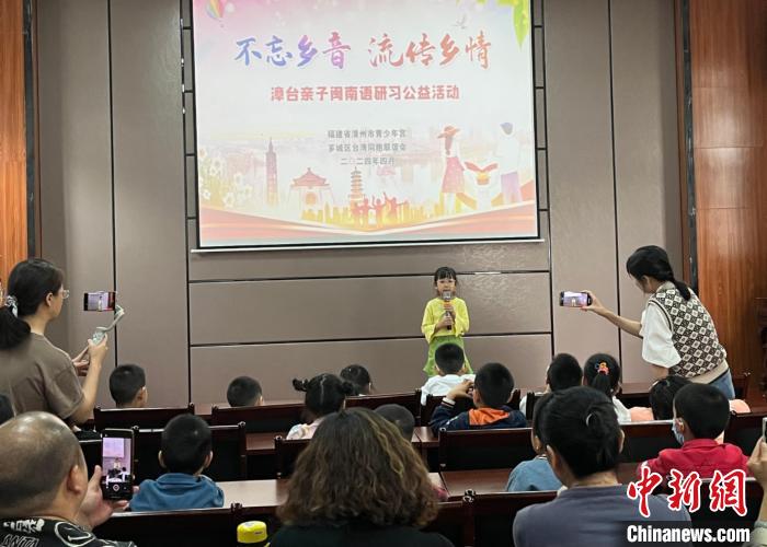 中新网漳州4月14日电 (黄林苹)14日,“不忘乡音 流传乡情”漳台亲子闽南语研习公益活动在福建漳州市青少年宫举行,30组漳州和台湾家庭约60人到场参加。