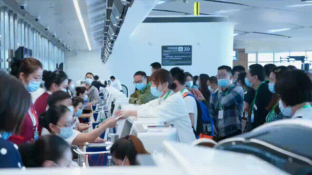 人潮涌动的空港口岸现场。