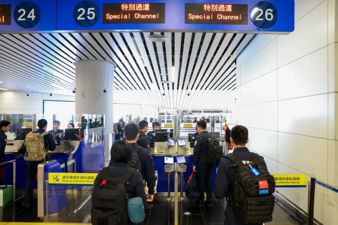 全球特警挑战赛赛后,广州边检总站白云边检站开设专用通道,保障中国特警队参赛人员高效通关。(凌观明摄)