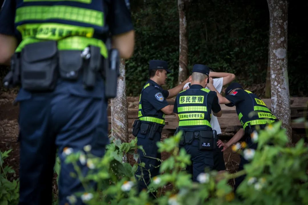 移民管理警察在边境缉毒抓捕场面。