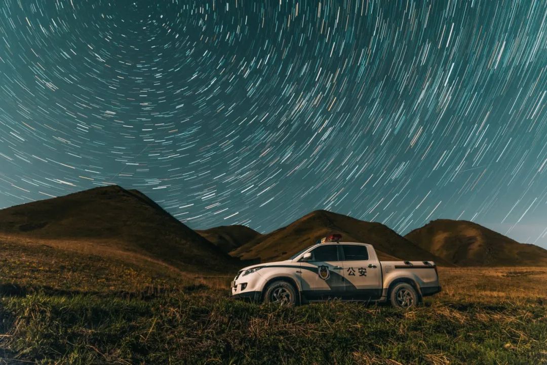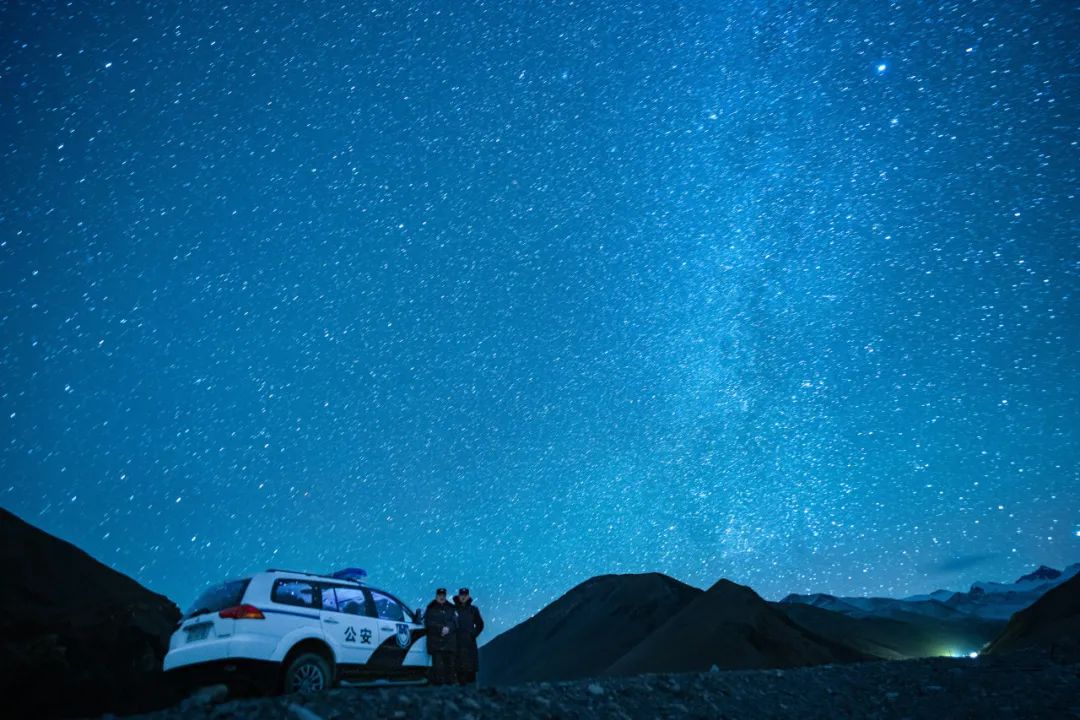 西藏日喀则扎西宗边境派出所移民管理警察在巡逻途中与星空合影。(陈净萱摄)