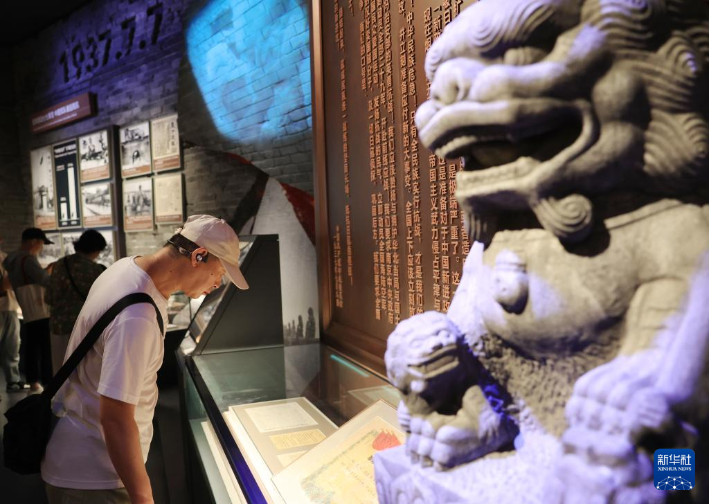 7月8日,参观者在中国人民抗日战争纪念馆参观《为了民族解放与世界和平》主题展览。