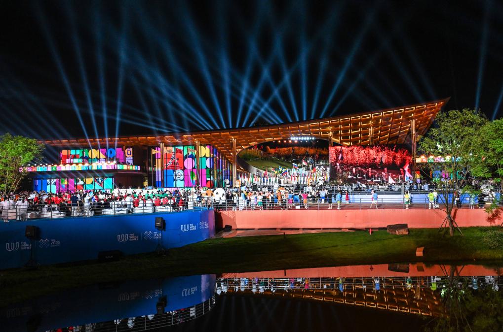 新华社成都8月17日电(记者杨思琪、丁文娴、董小红)暮色浸润龙泉山脉,晚风掠过绛溪河畔。在成都世园会成都国际友谊馆,一场缤纷无限、气象万千的世界运动盛会,迎来告别今宵、相约未来的时刻。