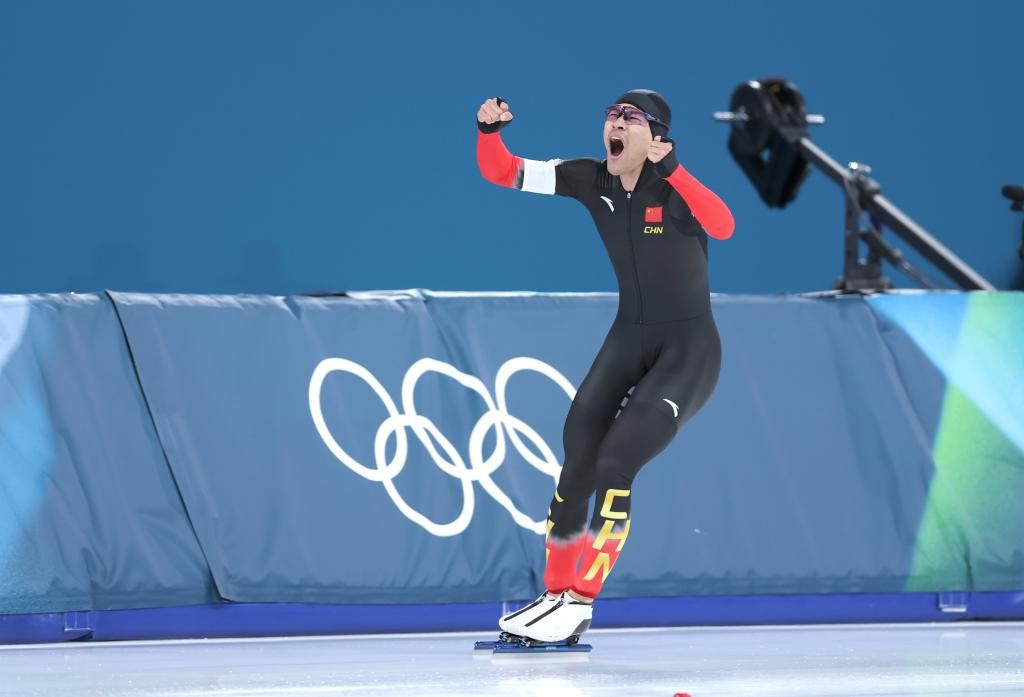 2月19日,宁忠岩在赛后庆祝。新华社记者 杜潇逸 摄