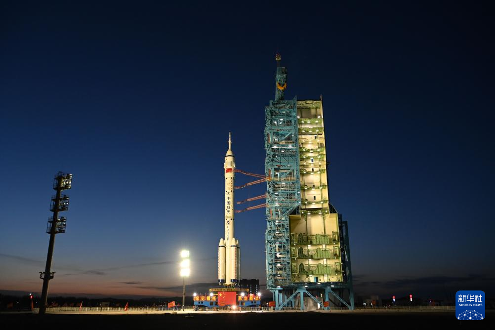 4月16日,神舟二十号载人飞船与长征二号F遥二十运载火箭组合体转运至发射区。新华社发(汪江波 摄)