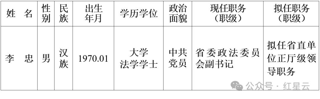 为了加强对干部选拔工作的监督,提高识别和任用干部的准确程度,现对省委常委会会议研究决定的下列拟任人选进行任前公示: