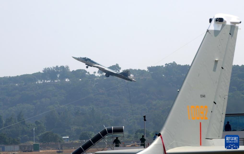 11月12日,俄罗斯苏-57战机在珠海航展上进行飞行表演。