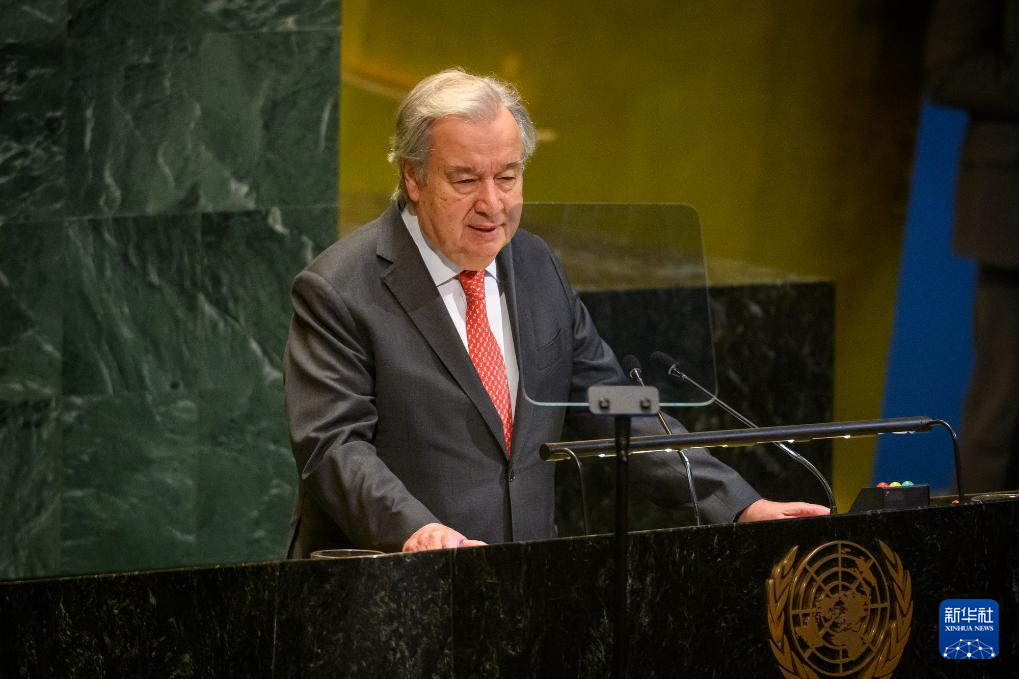 6月26日,在位于纽约的联合国总部,联合国秘书长古特雷斯在联合国大会纪念联合国宪章签署80周年的非正式全体会议上讲话。新华社发(联合国供图/洛伊·费利佩摄)
