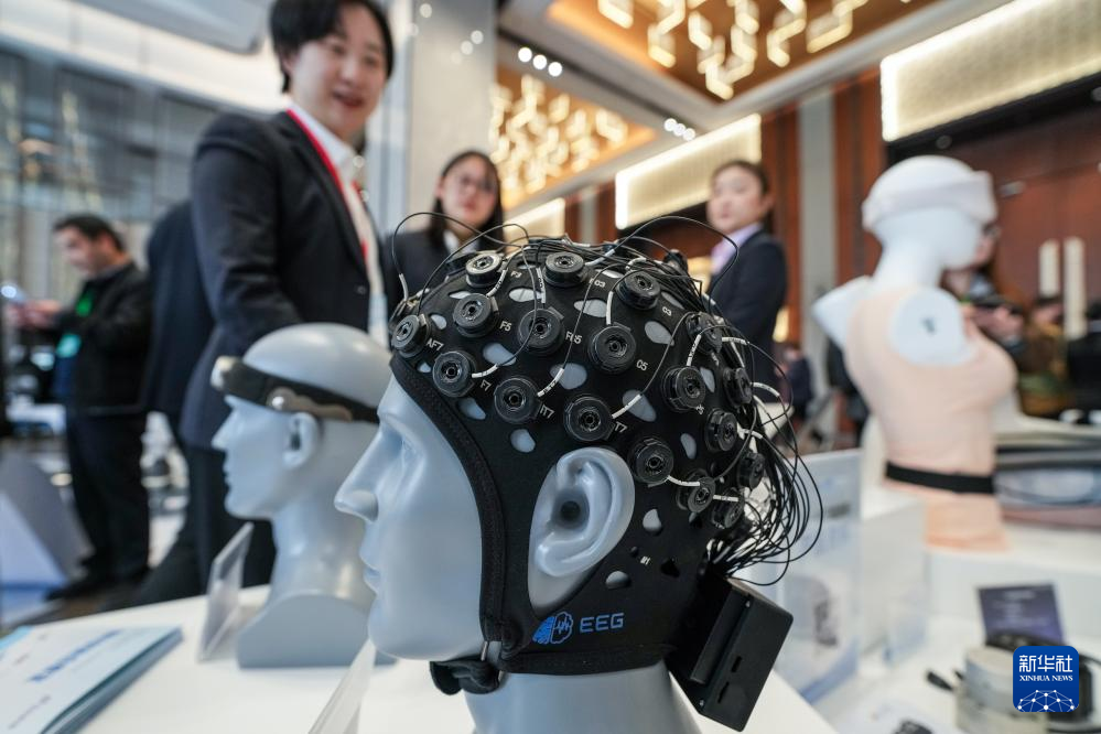 活动现场展示的脑机接口智能装备(2月14日摄)。