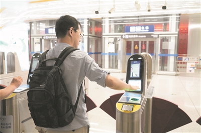 之后,乘坐地铁时,乘车人只需找到有圆环标志的“刷掌”闸机设备,将掌心对准圆环识别区,就可以通过闸机进入车站。出站后,乘车人手机便会收到本次过闸乘车扣款的提示。
