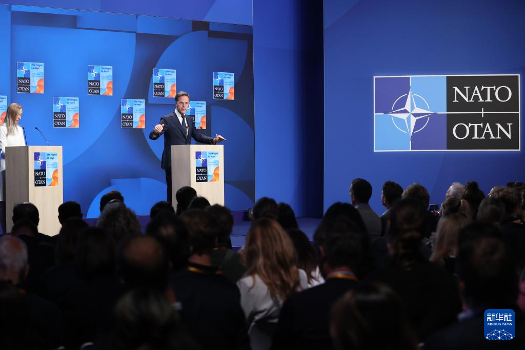 6月25日,在荷兰海牙,北约秘书长吕特在北约峰会期间出席新闻发布会。新华社记者 赵丁喆 摄