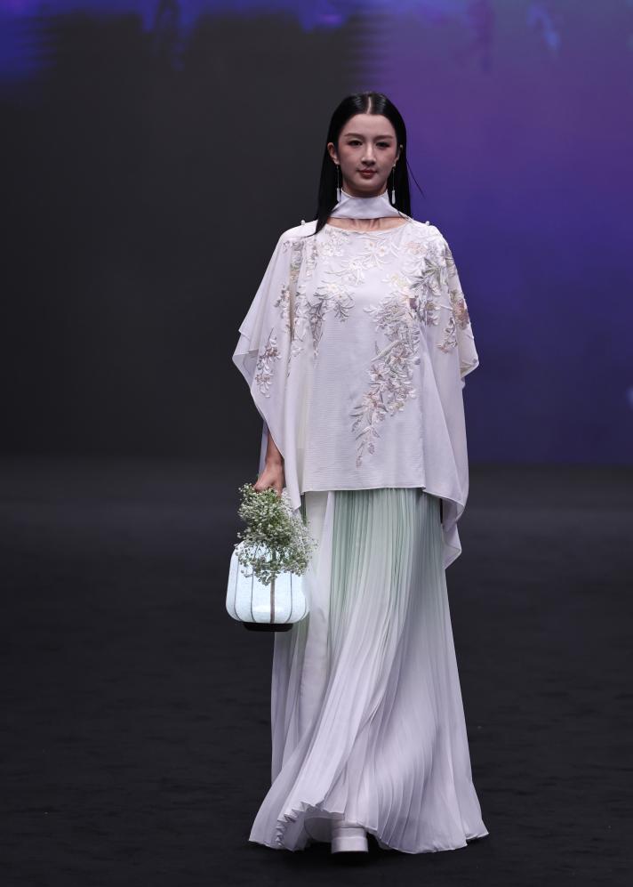 2025年10月15日,模特在2026春夏上海时装周东方·新中式秀上展示盖娅传说品牌时装。新华社记者方喆 摄