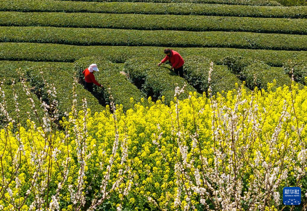 3月18日,茶农在湖北省咸宁市通城县四庄乡寺背村卧龙沟生态有机茶业专业合作社采摘茶叶。新华社发(刘建平 摄)