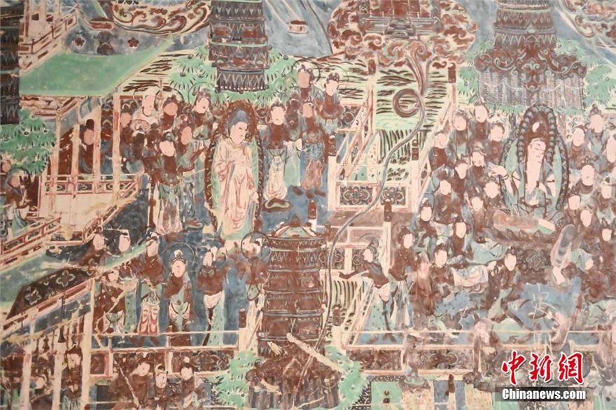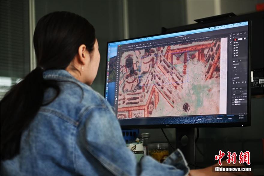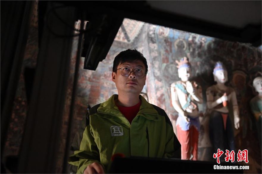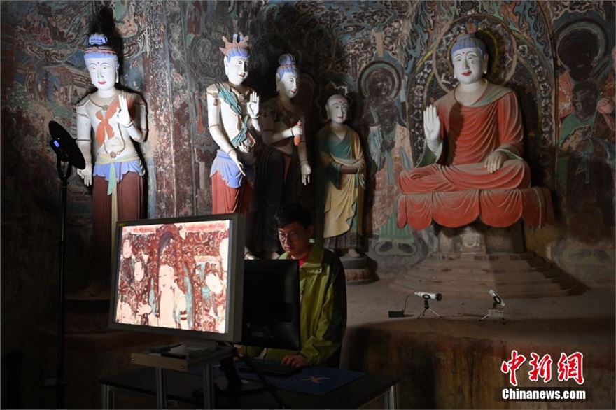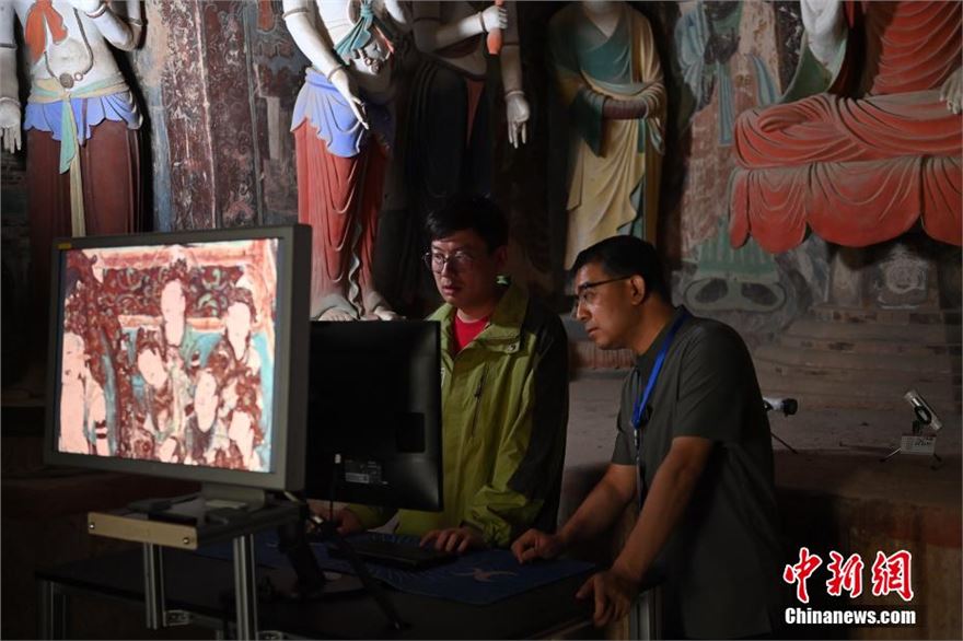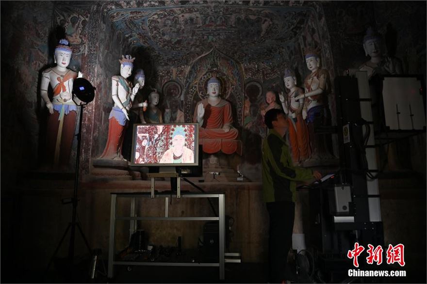 6月5日,甘肃敦煌莫高窟内等待数字化采集的壁画。近期,敦煌研究院文物数字化保护团队荣获了第28届“中国青年五四奖章集体”,截至2023年底该团队完成了敦煌石窟295个洞窟的壁画数字化采集,5万张历史档案底片的数字化扫描工作,形成了海量的数字化成果。