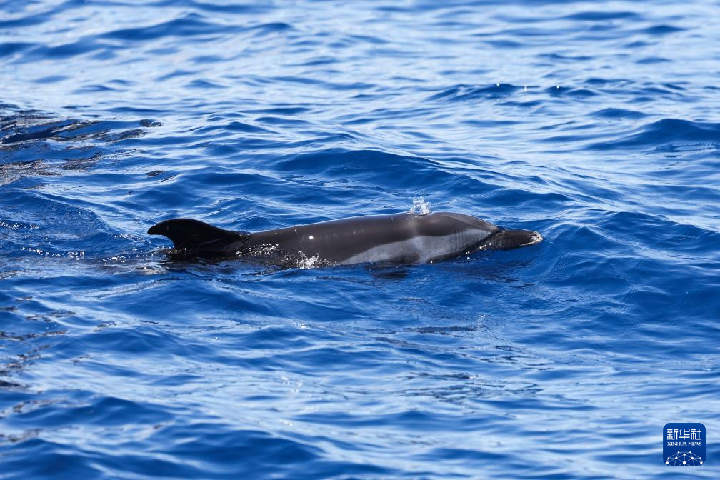 9月14日,在海南万宁一处海域,海豚“万万”在大海中畅游。