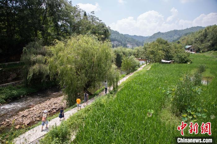 记者日前走进贵州省毕节市七星关区梨树镇上小河村,清风拂面,满目青翠,层峦叠翠、溪流潺潺的秀美风景,与“山水画墙壁”的民居相得益彰,让人在这里望得见山、看得见水、记得住乡愁。