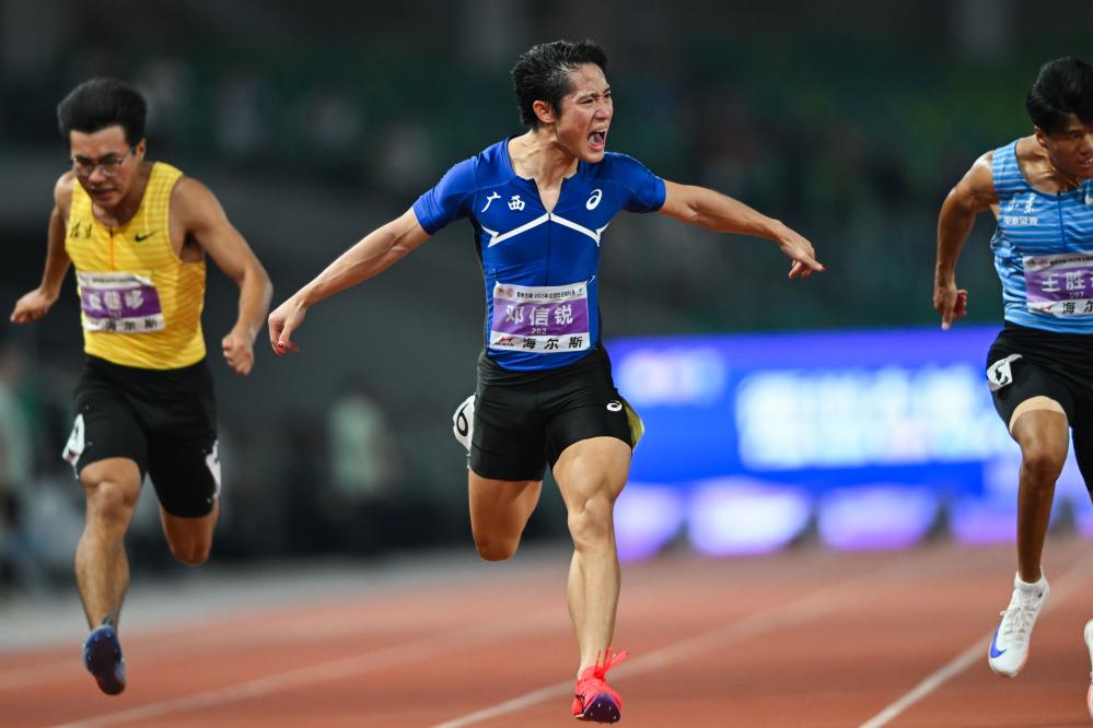 男子100米半决赛也进行得异常激烈,名将谢震业因为在小组中排名第四,甚至没能闯入决赛。两小时之后的决赛中,半决赛排名第一的广西队选手邓信锐以10秒06的个人最好成绩夺冠,成为史上第七位突破10秒10的中国队运动员。