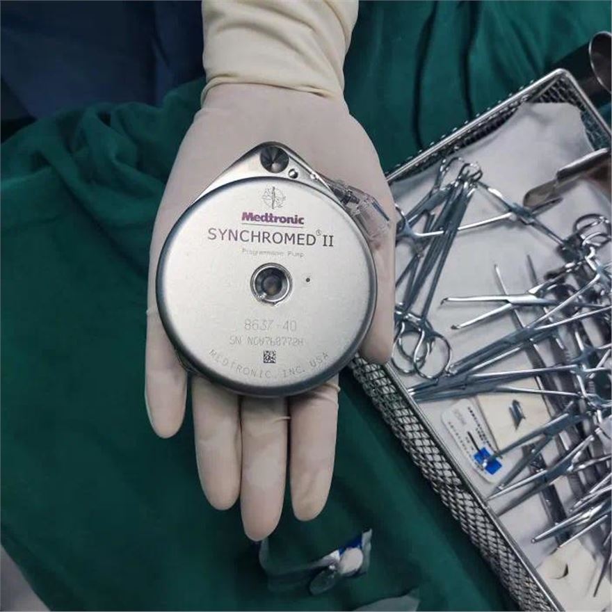 长沙市第一医院麻醉科副主任管小红介绍,鞘内镇痛泵植入术是目前国际上公认的控制晚期癌痛的领先技术,具有创伤小、疗效优、用药量少、副作用小等优点,分为全植入式和半植入式。其原理是将一个持续泵药的装置,通过手术的方式埋置于患者体内。泵药的导管终端置入椎管内,直通脑脊液。药物直接作用于中枢神经负责疼痛信号传导的神经元,从而安全有效地达到镇痛的一种方法。