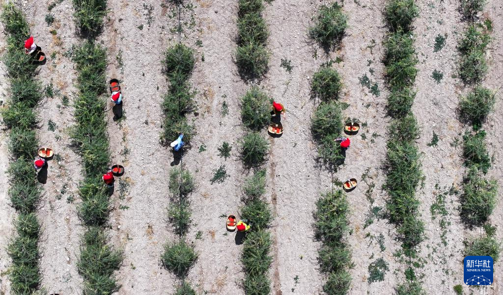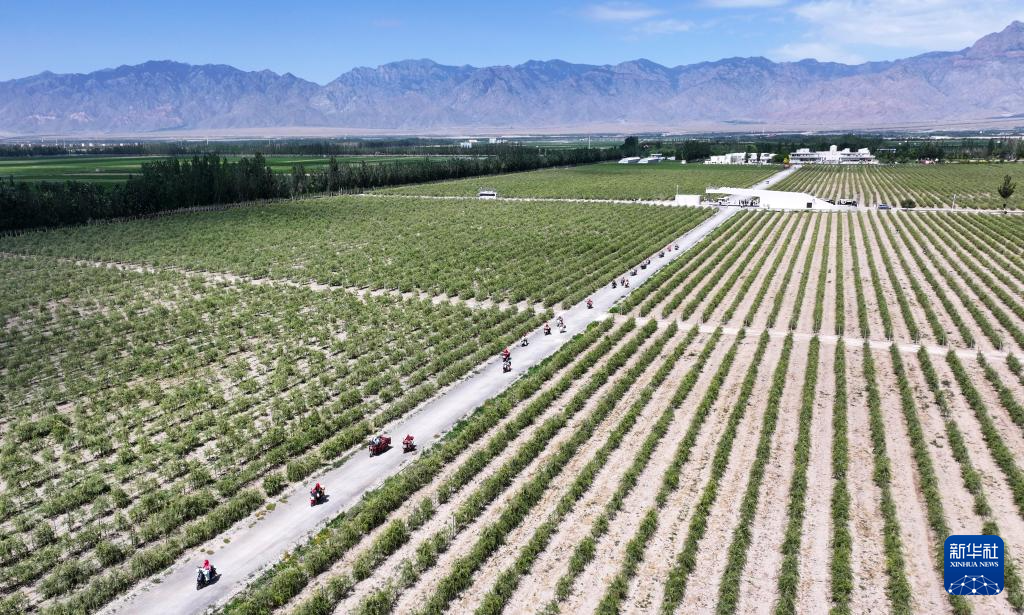 近日,宁夏头茬枸杞进入采摘收获季。6月15日,“宁夏枸杞开园节”在位于贺兰山脚下的百瑞源殷红子熟枸杞庄园开幕,采摘工忙碌在红果满枝头的枸杞地里。