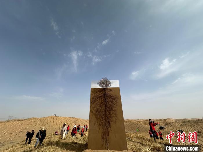 4月22日,“汇聚绿色大能量,助力‘三北’攻坚战——‘春天种下大美甘肃’活动”在甘肃武威市凉州区启动。图为现场展示的花棒防风固沙效果图。中新社记者 冯志军 摄