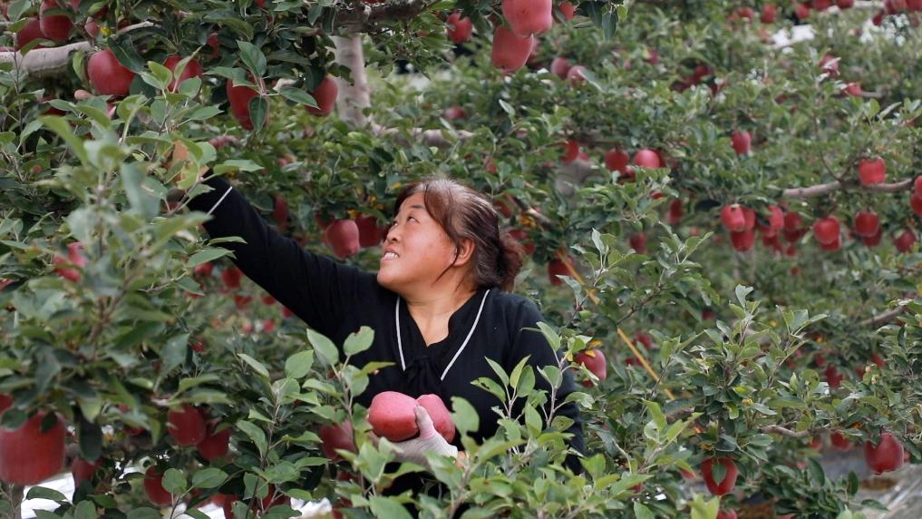 在甘肃天水,丰收时节的果实缀满枝头。火红的苹果,连接着乡村全面振兴的美好未来。