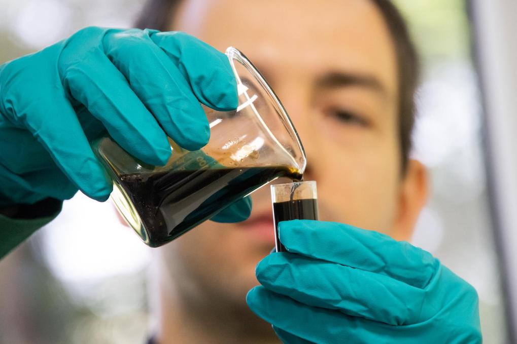 2022年5月24日,在匈牙利萨兹豪隆包陶多瑙河炼油厂,一名工人对通过阿德里亚输油管道运达的原油样品进行质量分析。新华社发(弗尔季·奥蒂洛摄)
