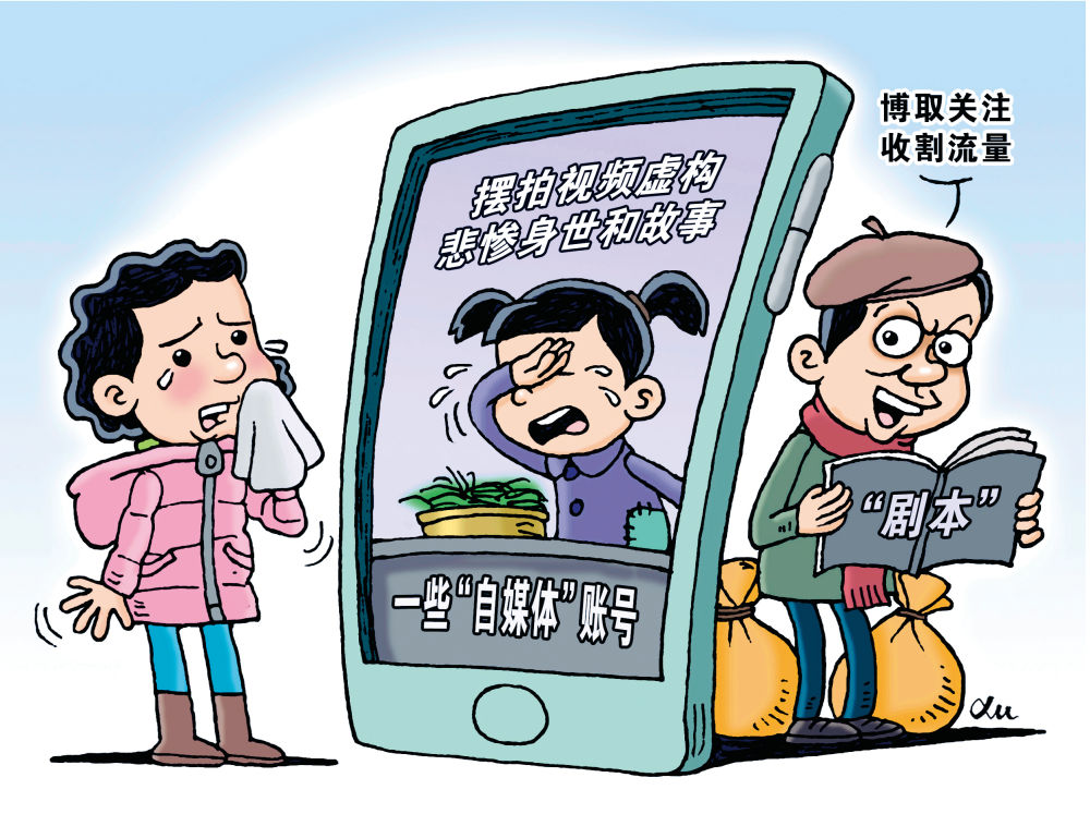 视频时代,流量能载舟亦能覆舟,一些人通过编造谣言、立虚假人设获得广泛关注后,通过直播带货等方式牟利,搅乱直播生态一池春水。譬如引发全网关注的“秦朗丢作业事件”,实际是网红自导自演的闹剧,其间自称“秦朗舅舅”“秦朗老师”之人,在获得关注后趁势通过流量变现;曾被称为“正义化身”的网红“铁头惩恶扬善”一度因打假走红,通过直播带货、商业广告变现,后因敲诈勒索被警方立案调查。