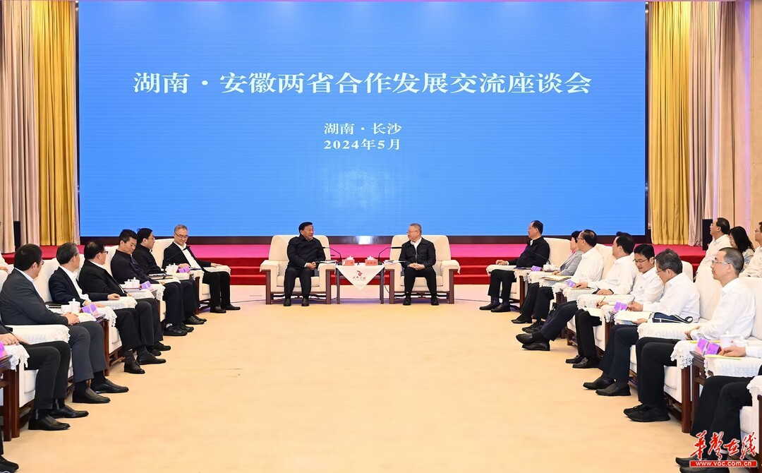 (5月22日,安徽省党政代表团来湘考察,两省在长沙召开合作发展交流座谈会。)