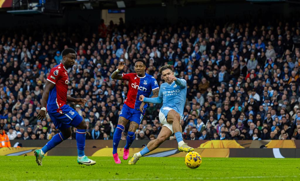2023年12月16日,曼城队球员格拉利什(右)在2023-2024赛季英格兰足球超级联赛第17轮比赛中破门。新华社发