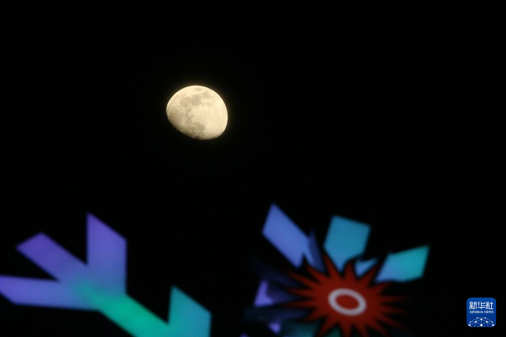 1月29日在黑龙江亚布力滑雪旅游度假区拍摄的月亮。新华社发(曾东摄)