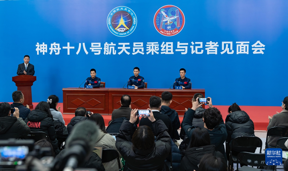新华社北京1月8日电(刘艺、占康)中国航天员科研训练中心8日下午在北京航天城举行神舟十八号航天员乘组与记者见面会,叶光富、李聪、李广苏3名航天员从太空返回两个多月后首次正式公开亮相。
