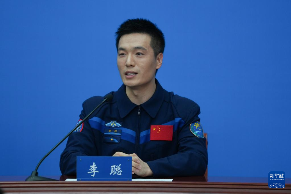 1月8日,在北京航天城,神舟十八号航天员李聪回答记者提问。新华社记者李明刚摄