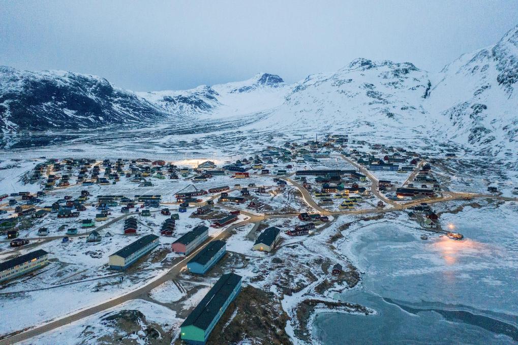 这是2025年3月21日拍摄的丹麦自治领地格陵兰岛纳尔萨克镇(无人机照片)。新华社记者彭子洋摄