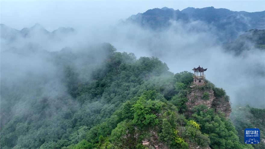 受雨水天气影响,位于河北省邢台市西部太行山深处的紫金山景区出现云海景观,层层云海在奇险峻秀的山峦间翻腾,群山在云海中若隐若现。