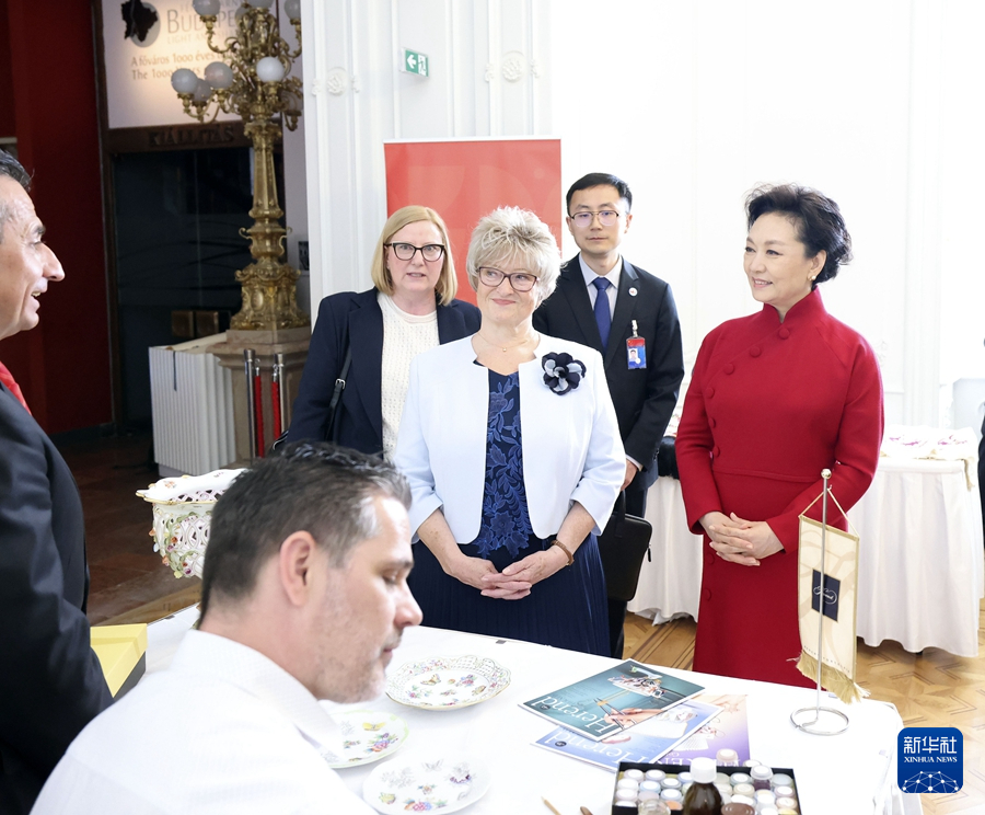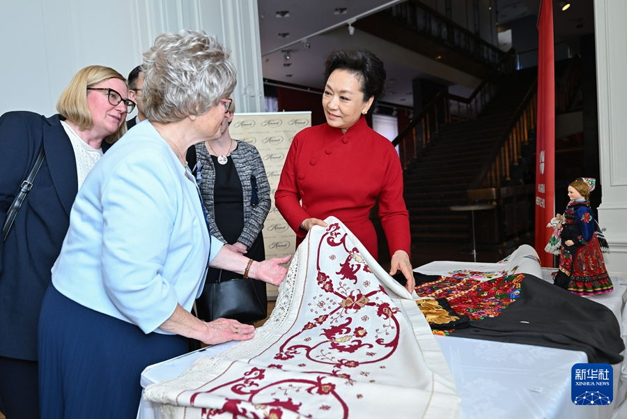 纳吉陪同彭丽媛欣赏匈牙利海兰德瓷器和传统刺绣技艺展示。彭丽媛表示,匈牙利精美的瓷器和高超的刺绣技艺令人印象深刻。瓷器和刺绣是中匈两国文明的共同符号,期待两国艺术家们加强交流互鉴,推动文明交融。