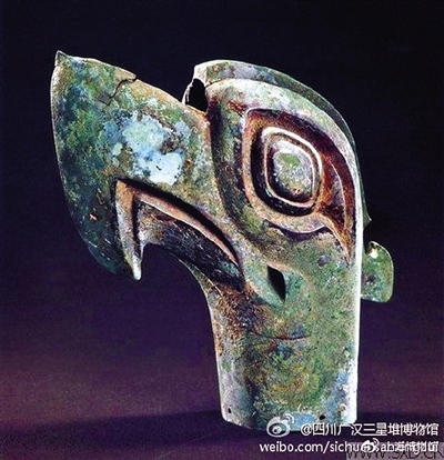 卷鼻结界兽形象则综合了三星堆的青铜大面具、金面罩青铜人头像、青铜兽面具和青铜鹰形铃等多种元素。最明显的表现在于卷鼻结界兽的卷鼻子,这一设计与青铜大鸟头的嘴部造型极为相似。这个鸟头通高40.3厘米,是三星堆遗址出土的鸟类造型器物中体量最大的。鸟与蜀族之关系极为密切,几代蜀王直接以鸟为名,也证明了这一点。