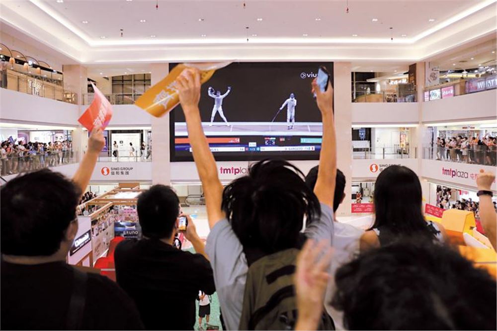 图:特区政府购入巴黎奥运及残奥在香港的电视播映权,让全港市民免费观看。图为上届奥运会市民在商场收看赛事为健儿打气。