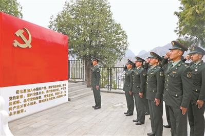 图①:清明节前夕,北京卫戍区某部官兵赴平西抗日烈士陵园开展祭扫活动,面向党旗宣誓,汲取前行力量。