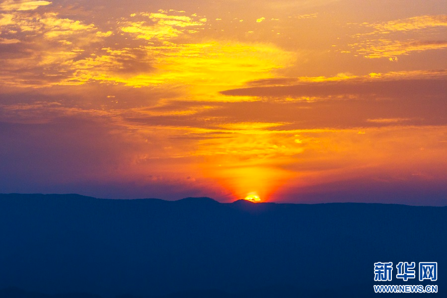 落霞宛如金色的绸缎。新华网发(袁志龙 摄)