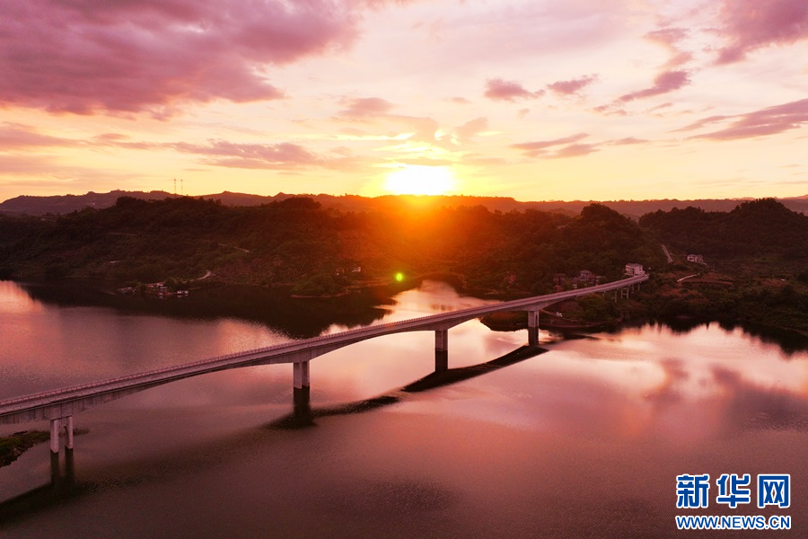 乐温大桥晚霞。新华网发(王亚明 摄)