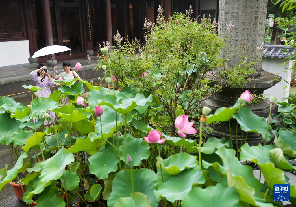 6月24日,人们在曲院风荷景区赏荷。