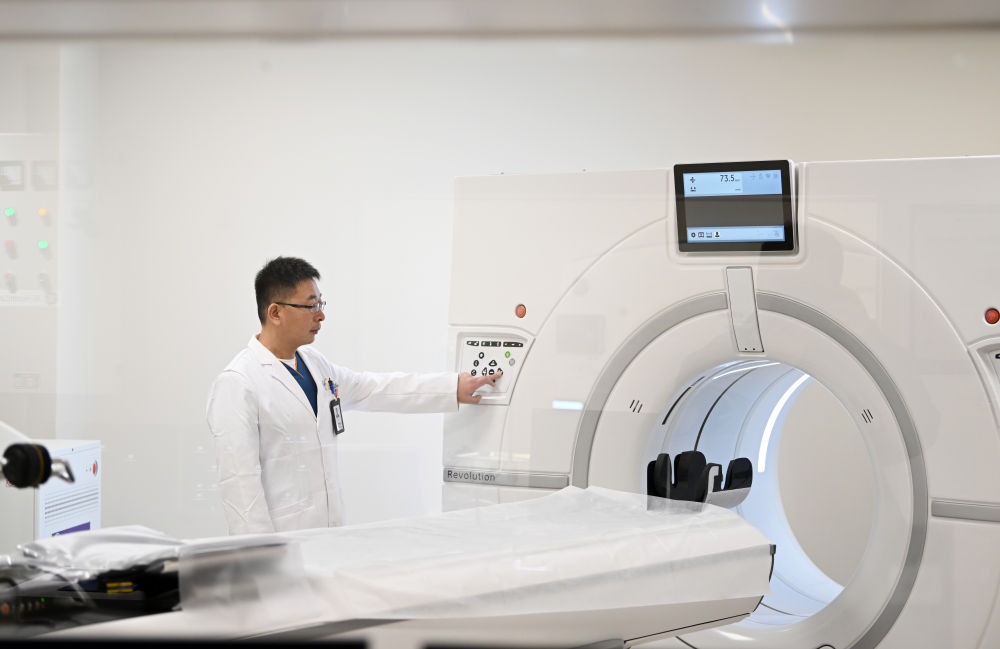 工作人员在天津鹏瑞利医院检查医疗设备(2024年12月16日摄)。新华社记者 李然 摄