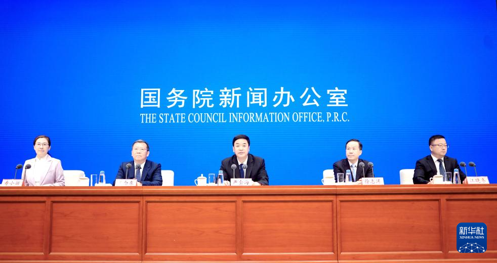 5月23日,国务院新闻办公室在北京举行“推动高质量发展”系列主题新闻发布会,西藏自治区党委副书记、自治区主席严金海,西藏自治区副主席徐志涛,西藏自治区发展改革委党组书记、副主任王念东,西藏自治区生态环境厅厅长汪晓冬围绕“推动新时代西藏长治久安和高质量发展行稳致远”作介绍,并答记者问。新华社记者 潘旭 摄