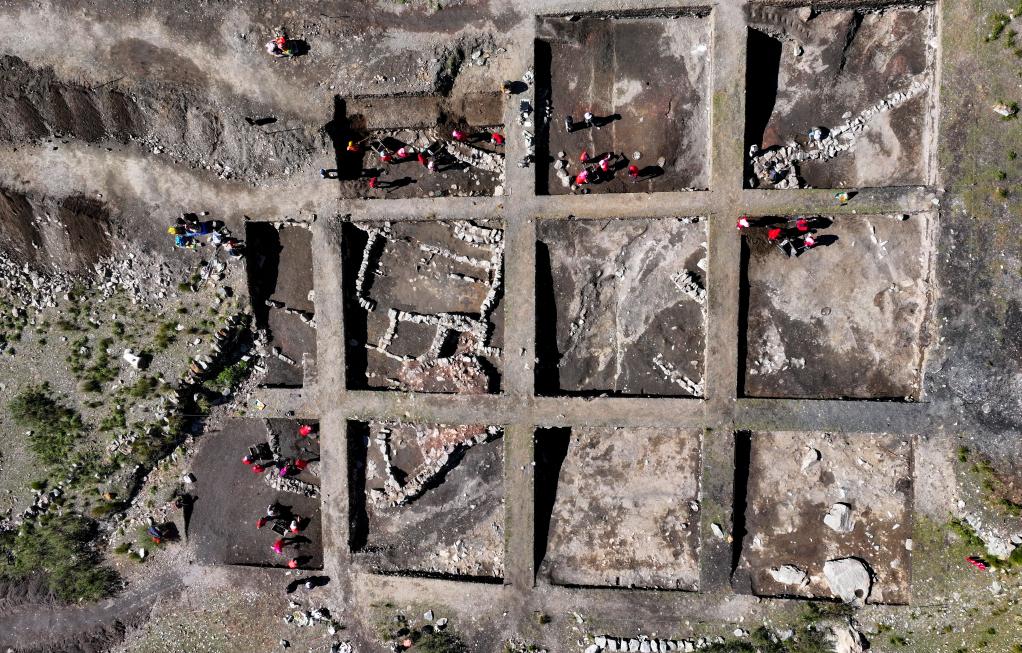 2024年10月24日,考古工作者在贺兰山苏峪口瓷窑址进行发掘(无人机照片)。新华社记者 冯开华 摄