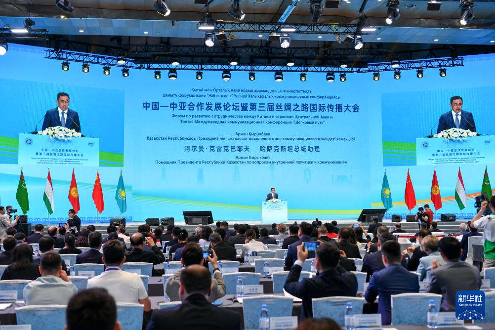 新华社阿斯塔纳6月22日电(记者马卓言 刘恺)中国—中亚合作发展论坛暨第三届丝绸之路国际传播大会22日在哈萨克斯坦阿斯塔纳举行。来自中国和中亚地区的约240位媒体智库和文化、企业界代表围绕深化丝路合作等议题进行深入讨论。