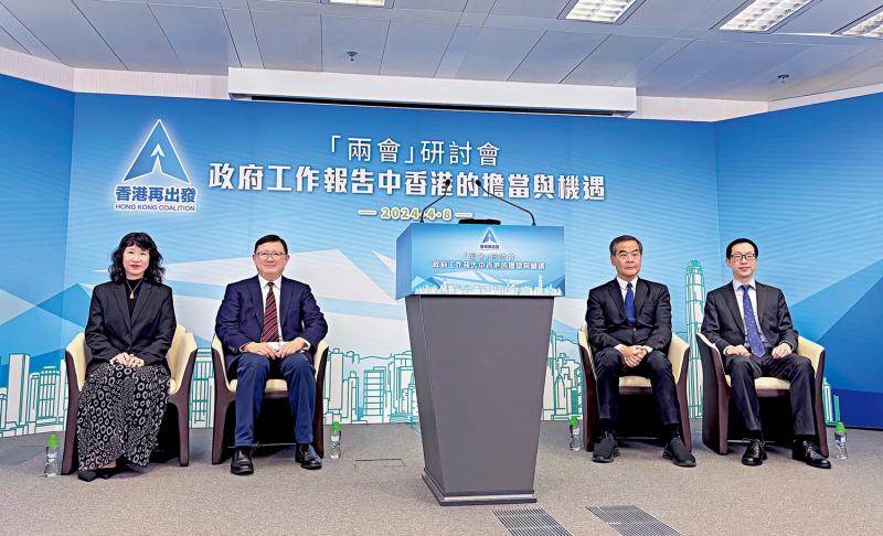 香港再出发大联盟昨日主办“两会”研讨会,以“政府工作报告中香港的担当与机遇”为主题,与会者从多个角度阐释香港如何因地制宜发展新质生产力,在国家大力推进现代化产业体系中抓紧机遇。