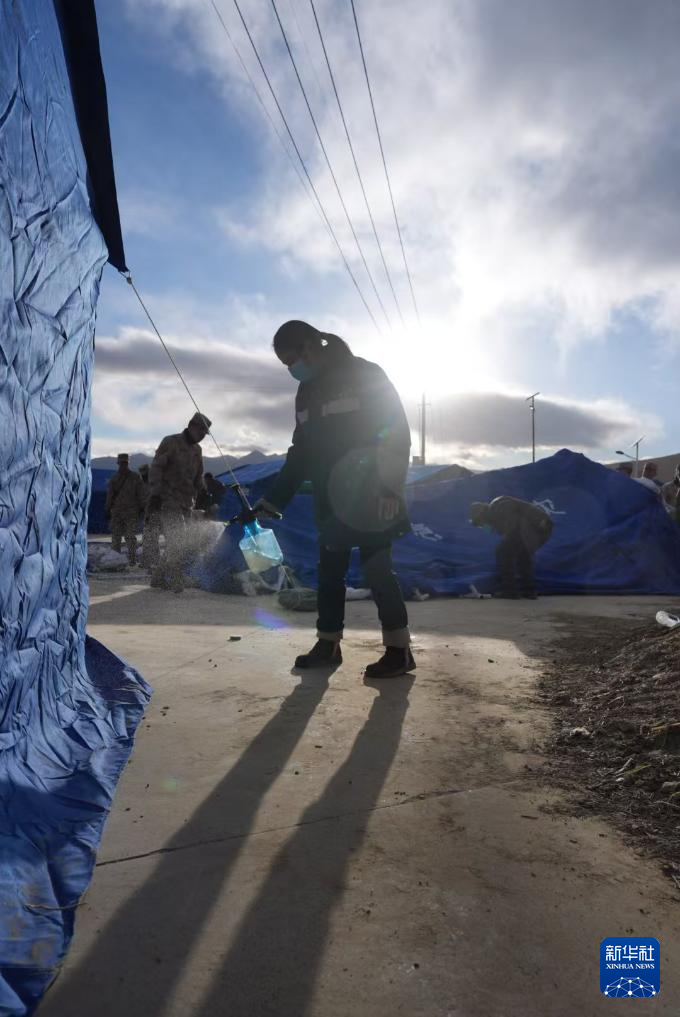 1月7日,在定日县长所乡古荣村,工作人员进行消杀作业。
