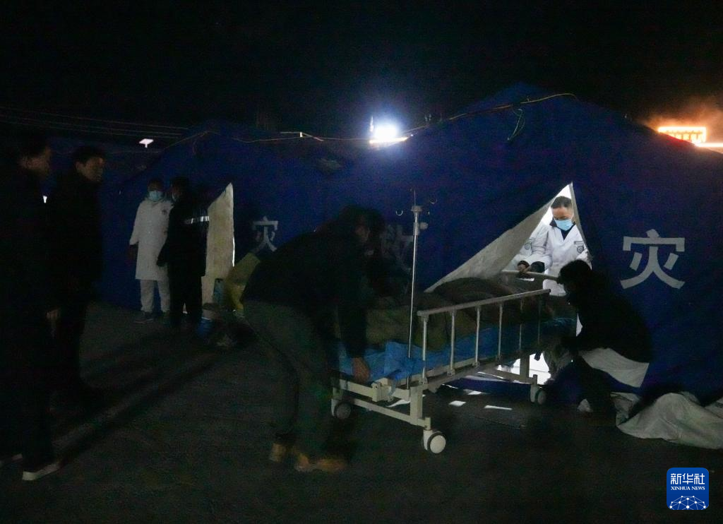 1月7日,在定日县人民医院临时搭建的帐篷里,医护人员全力救治因地震受伤人员。新华社记者 丁汀 摄