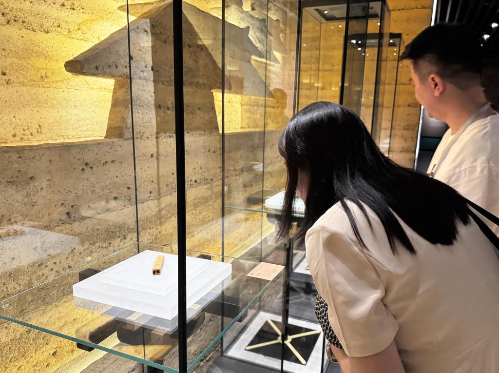 5月18日,游客在西域都护府博物馆展厅参观。新华社记者 曹槟 摄