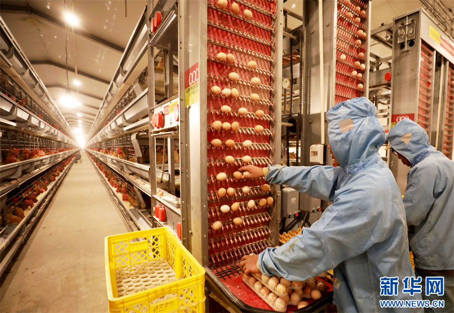 近日,安徽省淮北市濉溪县百善镇现代农业示范区一家集种禽繁育、苗鸡孵化、商品鸡养殖的企业车间内,工人正在进行种蛋生产。